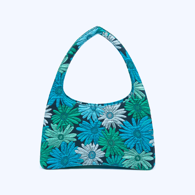 "Ellie" flowers Handbag, part of our limited collection, made with fine lilac floral fabric. Handcrafted closure in 3-micron yellow gold.