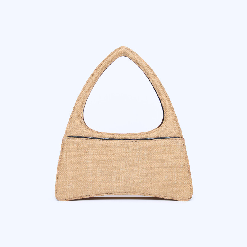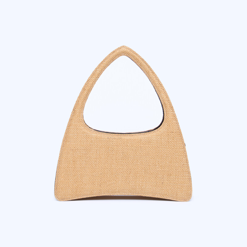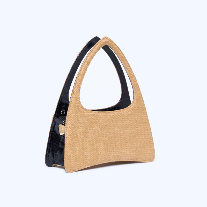 "Ellie" Triangle handbag, made of fine alligator leather and jute fiber. Handmade closure with 3-micron gold plating.
