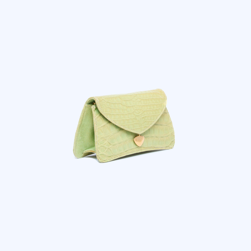 Ellie pochette, made of fine alligator leather. Handmade closure with 3 micron gold plating.
