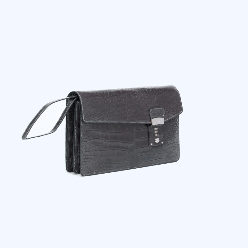 "Man" man's briefcase with 2 sections, crafted from python and calf leather, with snap closure finished in 3-micron palladium."