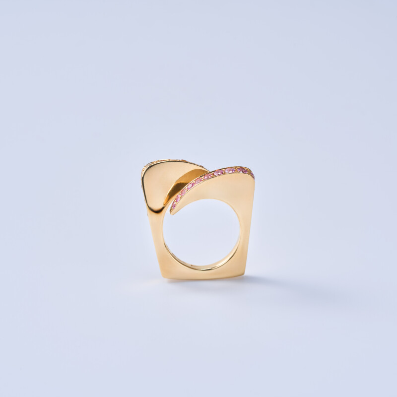 Made of 18kt yellow and rose gold with yellow and pink pavé-cut sapphires.