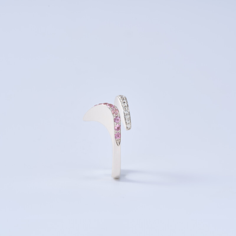 Made of 18kt white gold with pavé-cut diamonds and pink sapphires.