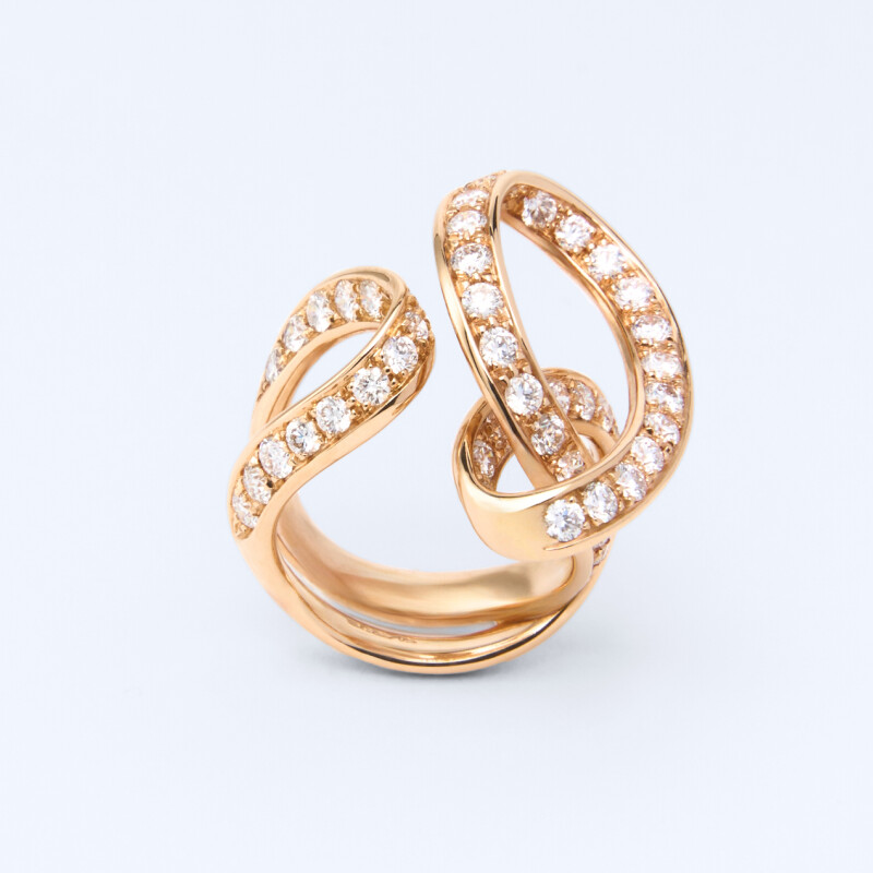 Discover the Sandra Dia Jewelry Collection, featuring rings, earrings, and necklaces adorned with a timeless weave shape. Crafted from lustrous gold in white, pink, and yellow hues, each piece exudes elegance and sophistication. Elevate your style with this captivating collection
