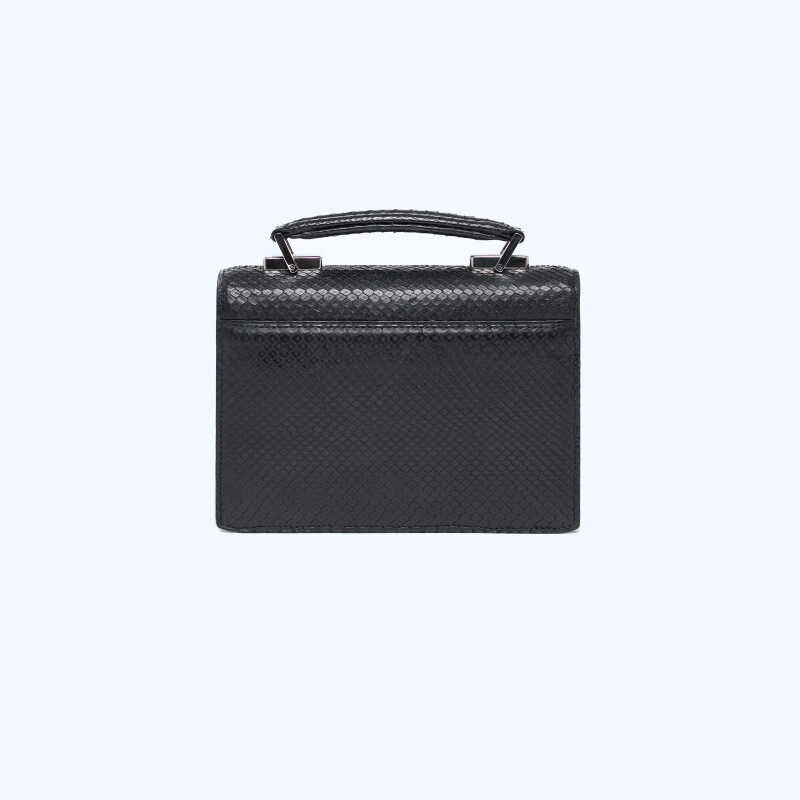 "Man" man's briefcase with 2 sections, crafted from python and calf leather, with snap closure finished in 3-micron palladium.