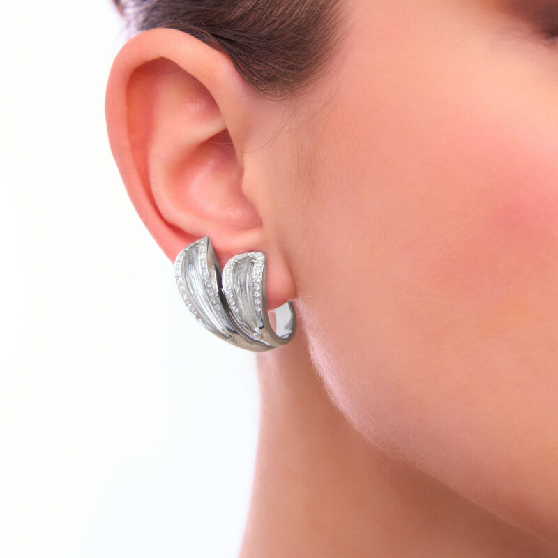 Made in 18kt white gold; high-quality brilliant cut white diamonds and inlaid Crystal Quartz.