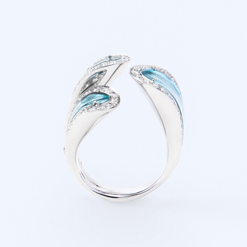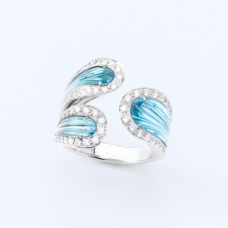 Made in 18kt white gold; high-quality brilliant cut white diamonds and inlaid Topaz.