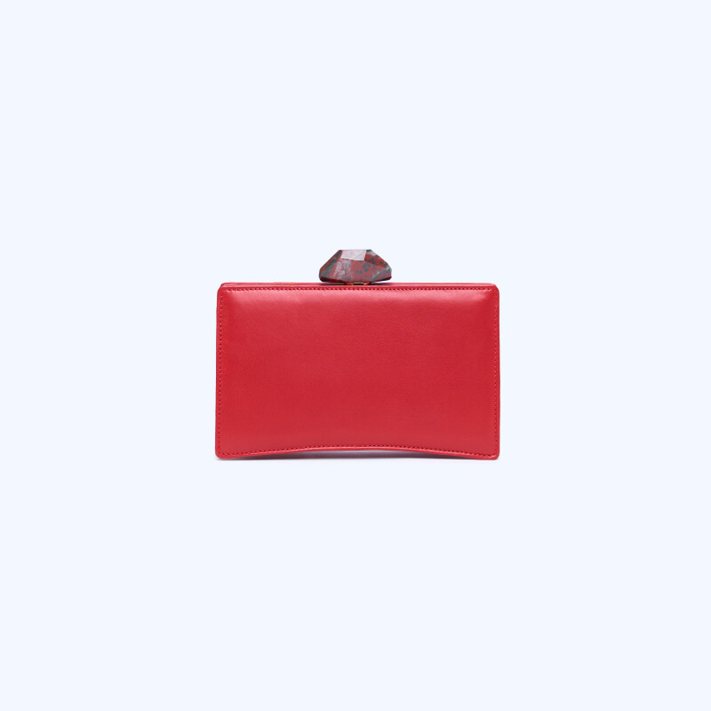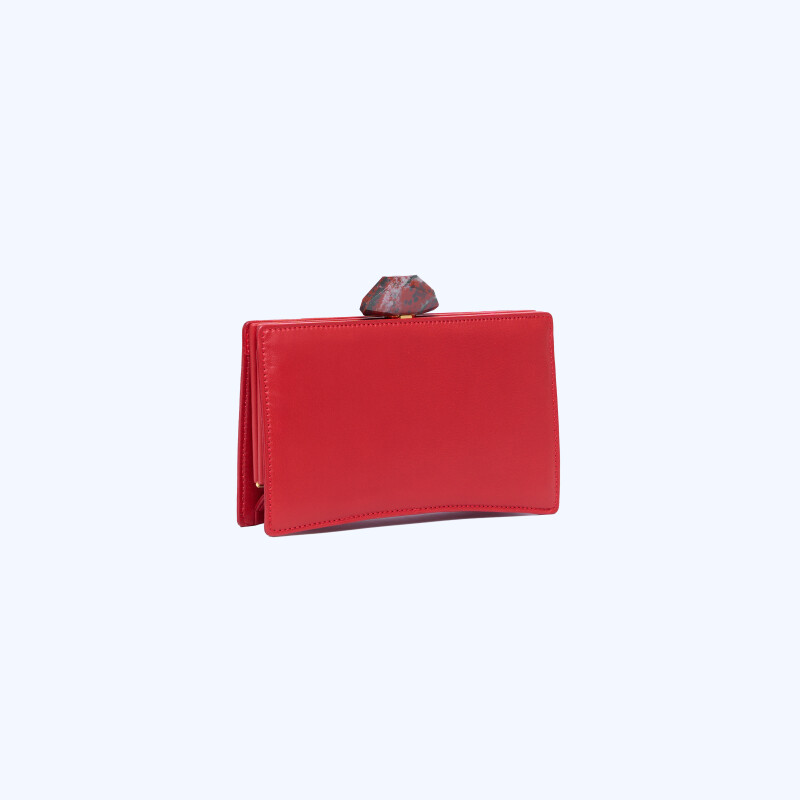 "Pochette Ashley, realizzata in nappa con poussoir in pietra diaspro rosso e verde."