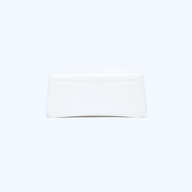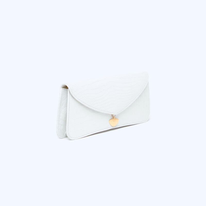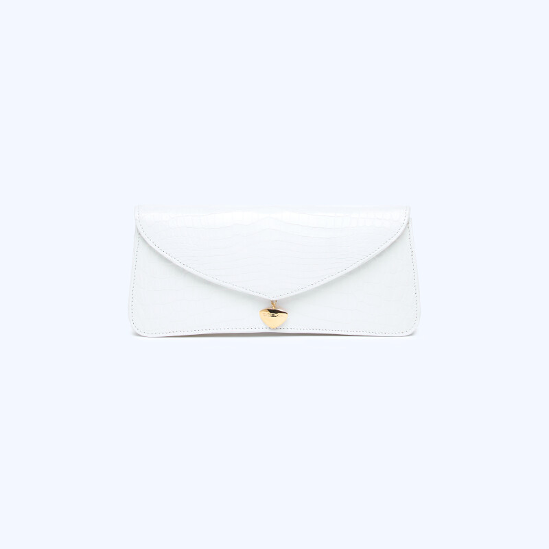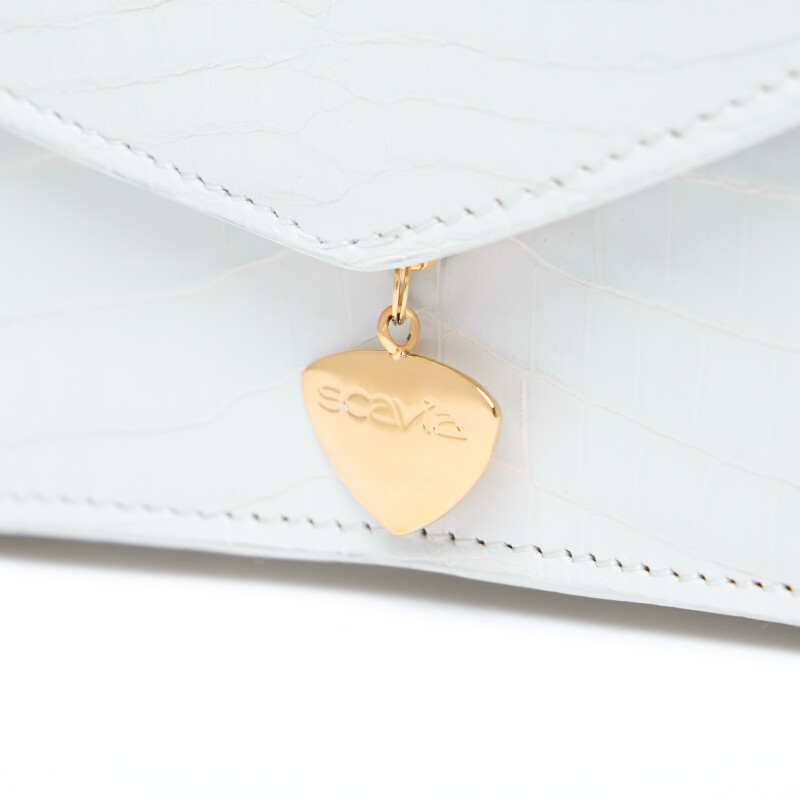 Pochette "Ellie" Cigarette, realizzata in pregiata pelle di Alligatore. Chiusura realizzata artigianalmente in 3 micron d’oro giallo.