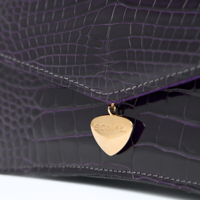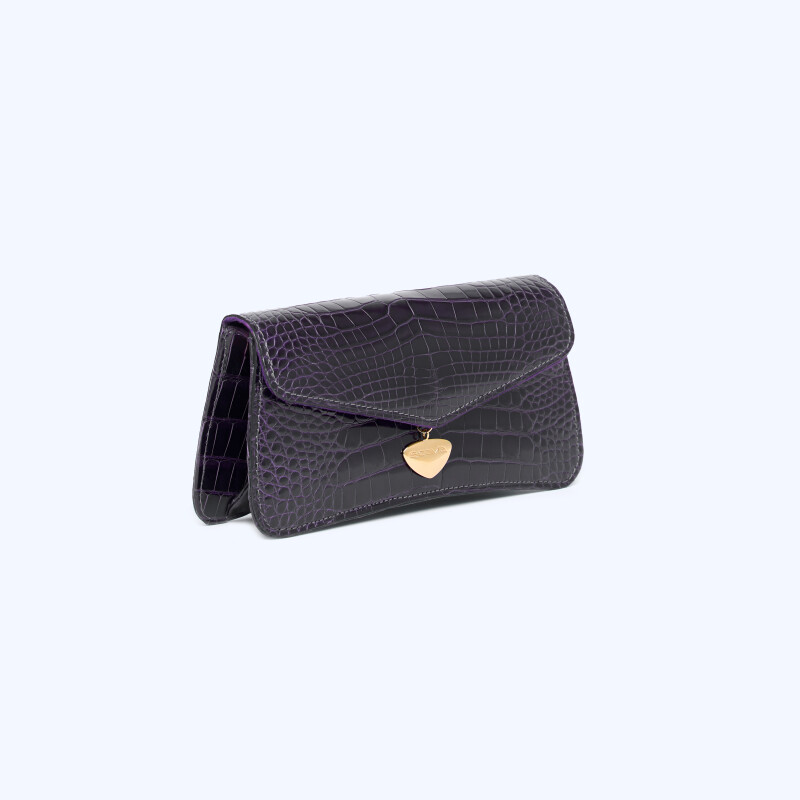 Pochette "Ellie" Cigarette, realizzata in pregiata pelle di Alligatore. Chiusura realizzata artigianalmente in 3 micron d’oro giallo.