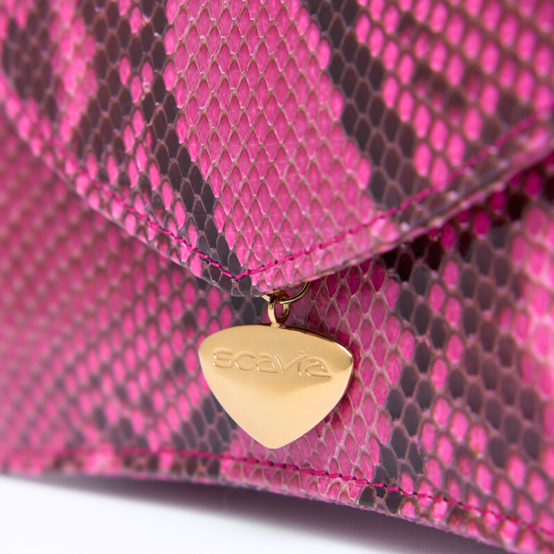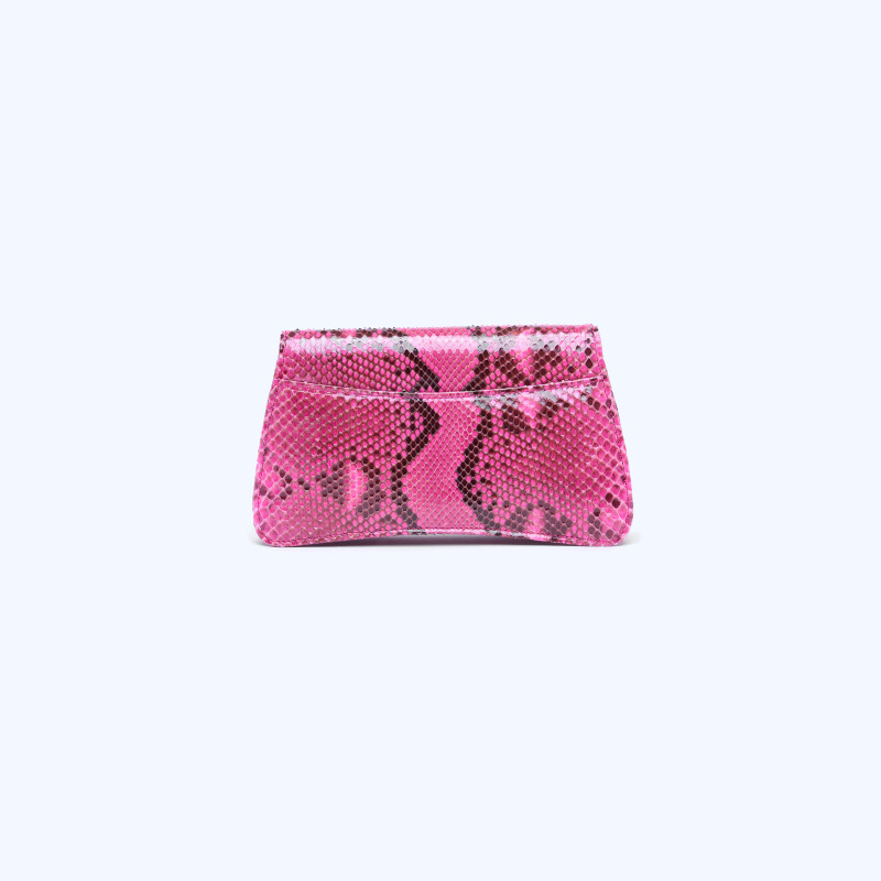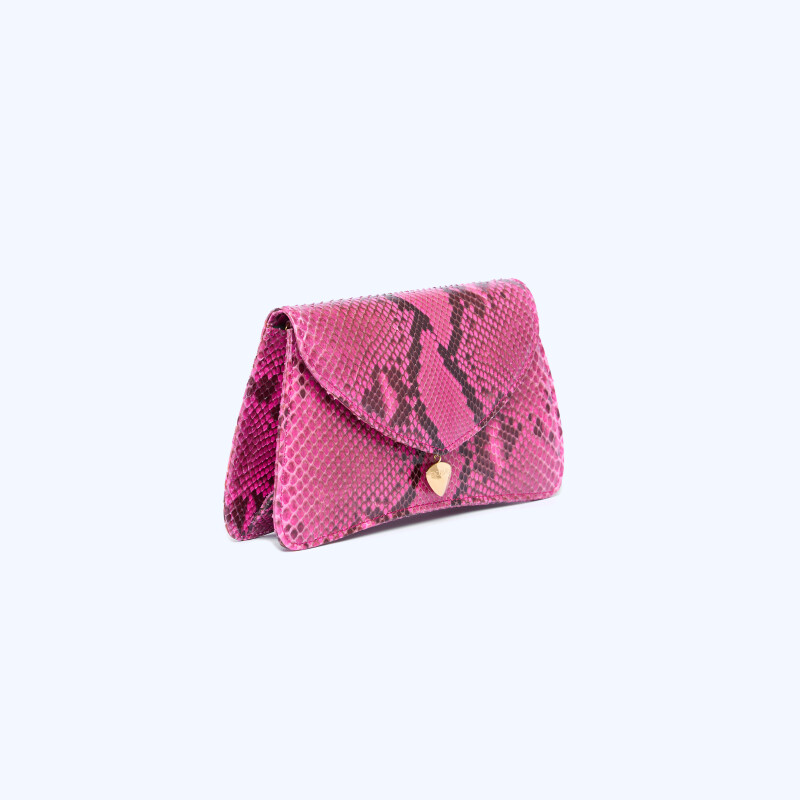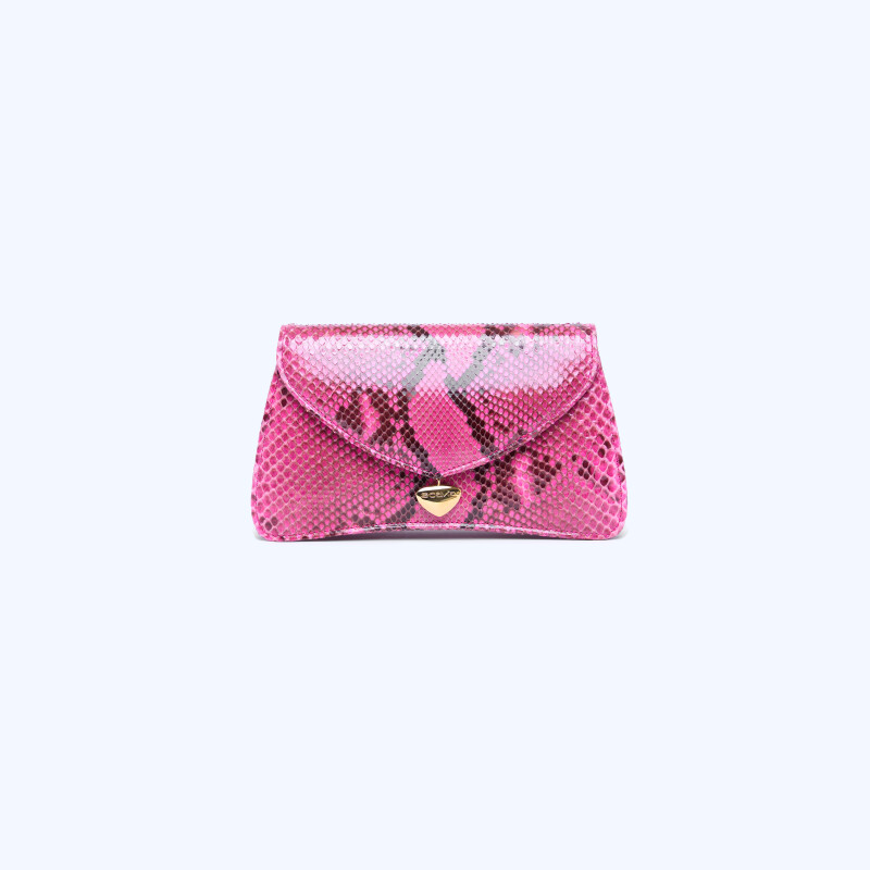 Pochette "Ellie", realizzata in pregiata pelle di Pitone. Chiusura realizzata artigianalmente in 3 micron d’oro giallo.