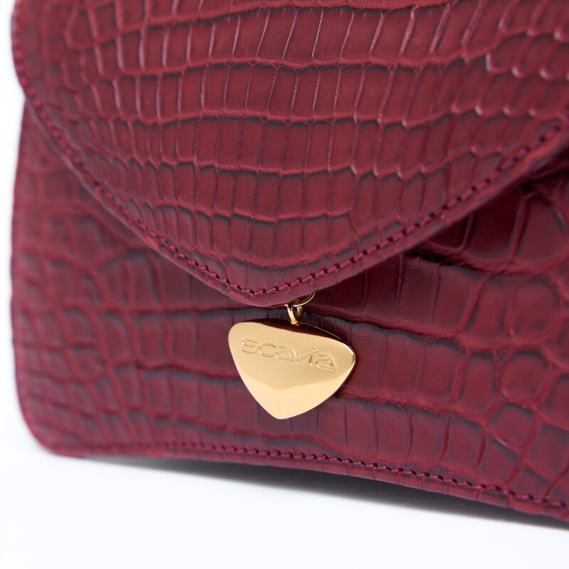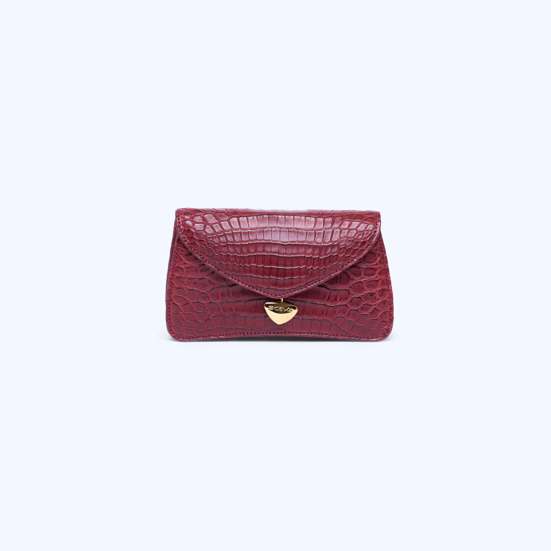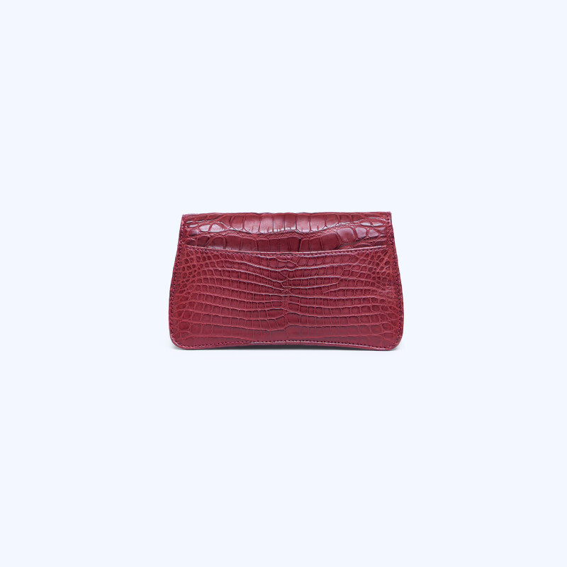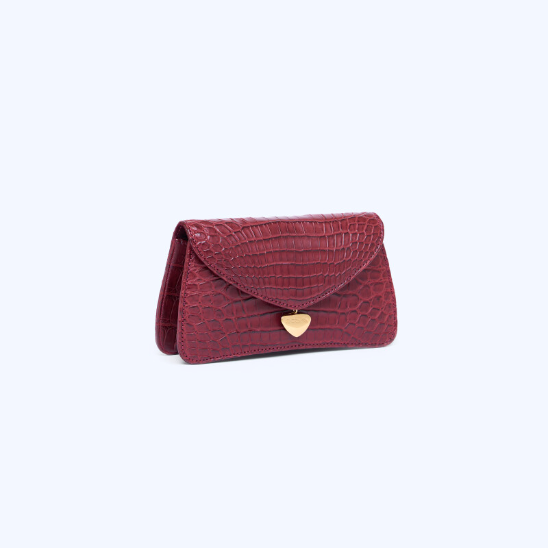 Pochette Ellie, realizzata in pregiata pelle di Alligatore. Chiusura realizzata artigianalmente in 3 micron d’oro giallo.