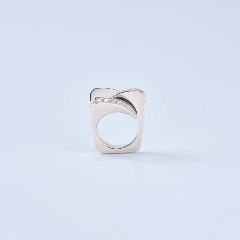 Realizzato in Oro bianco 18kt con diamanti taglio pavé.