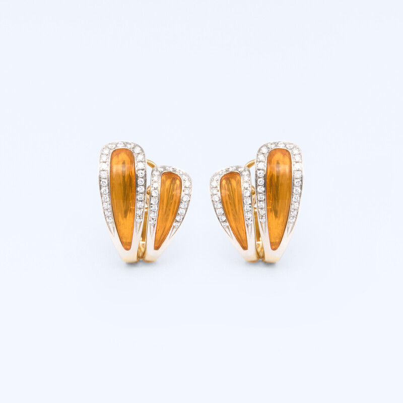Realizzati in oro bianco e giallo 18kt, diamanti bianchi taglio brillante di alta qualità e intarsio di Quarzo Citrino.