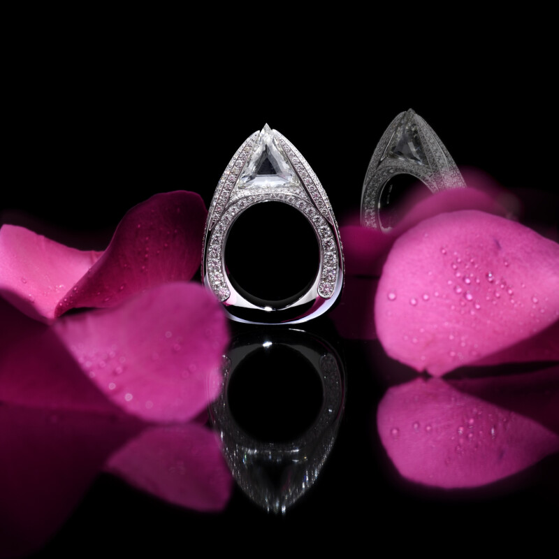 Una cascata di azzurro paraiba punteggiata dal blu degli zaffiri e illuminata dai diamanti è sospesa fra il candore delle perle.