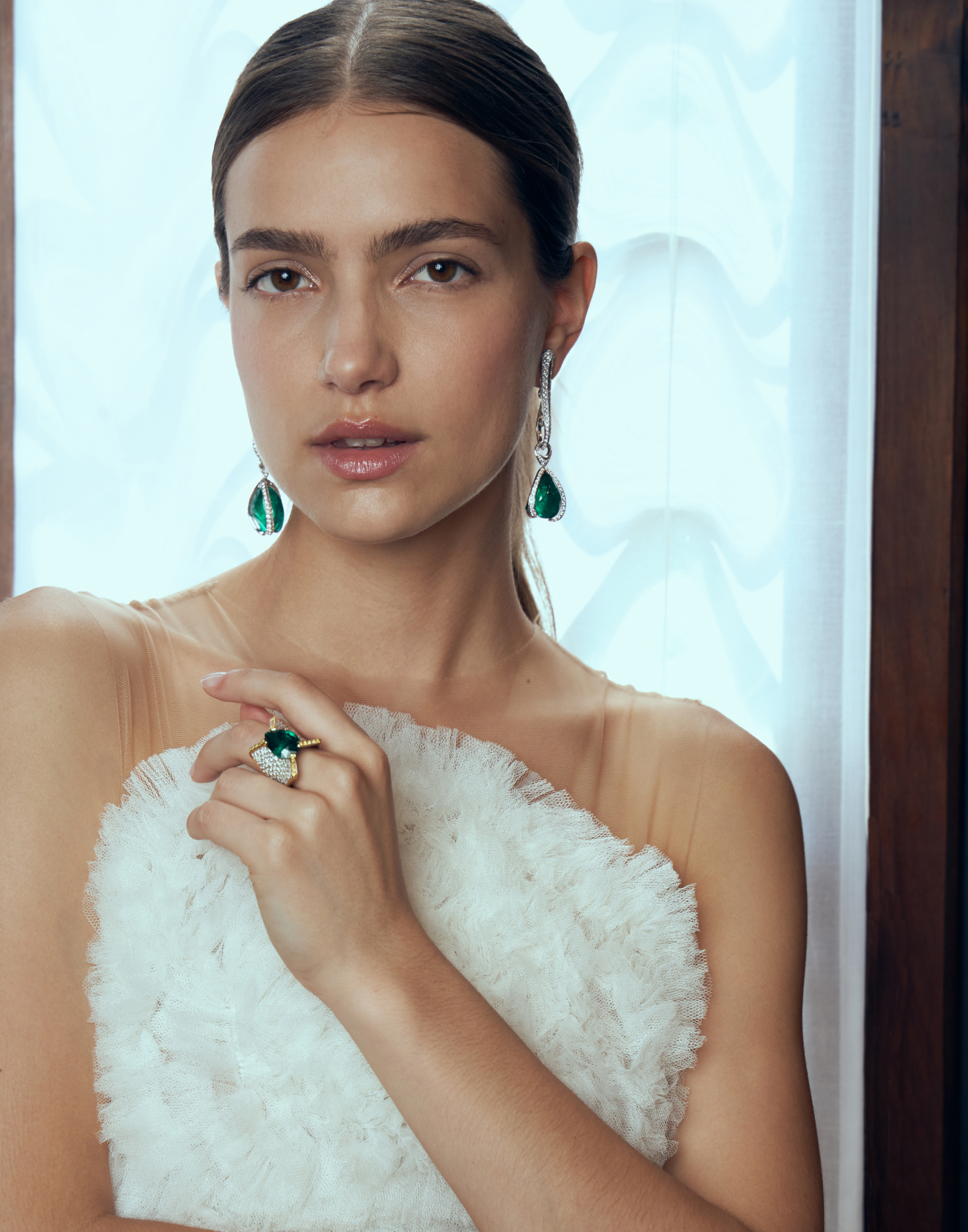 L'esposizione ha incluso alcuni dei nostri gioielli storici più iconici, insieme a nuove creazioni di Fulvio e Alessandro Scavia. I visitatori hanno potuto ammirare pezzi unici come i magnifici orecchini Sandra Dia, disegnati nel 1988 per Elizabeth Taylor e l’anello Due coni, vincitore del primo Diamond International Award nel 1976.